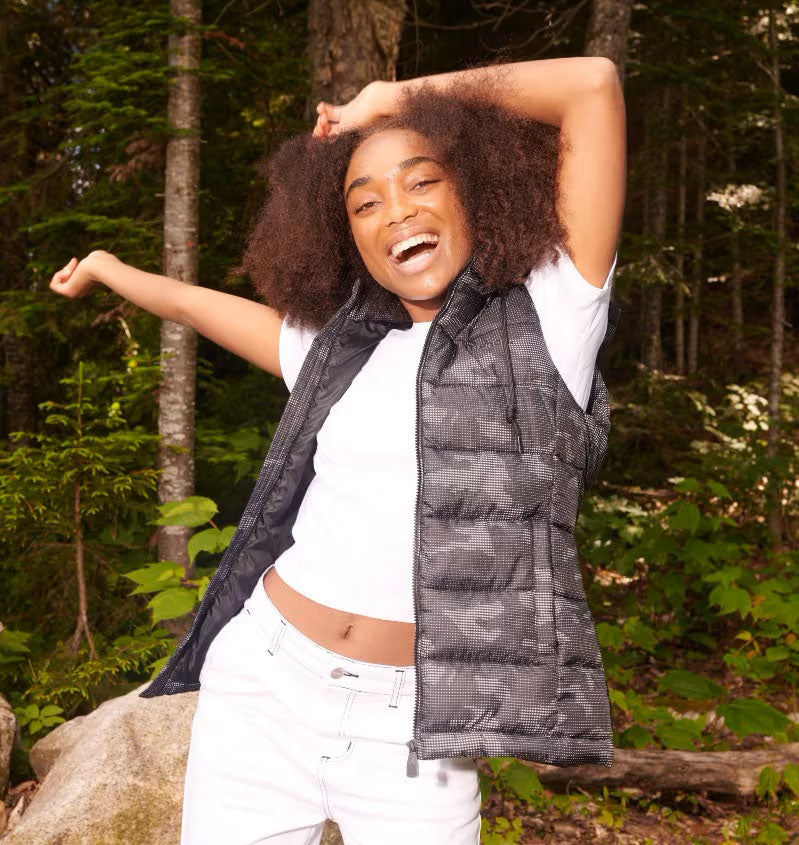 Eye-catching prints add an element of playfulness to any outfit and can take the most basic pairing from day to night. If you’re adamant about being extra comfy on the plane, you might want to try sweats with a groovy print so that you’re ready to go sightseeing when you land at your destination. Or throw a camo jacket over your silhouette to counter a monochrome look.