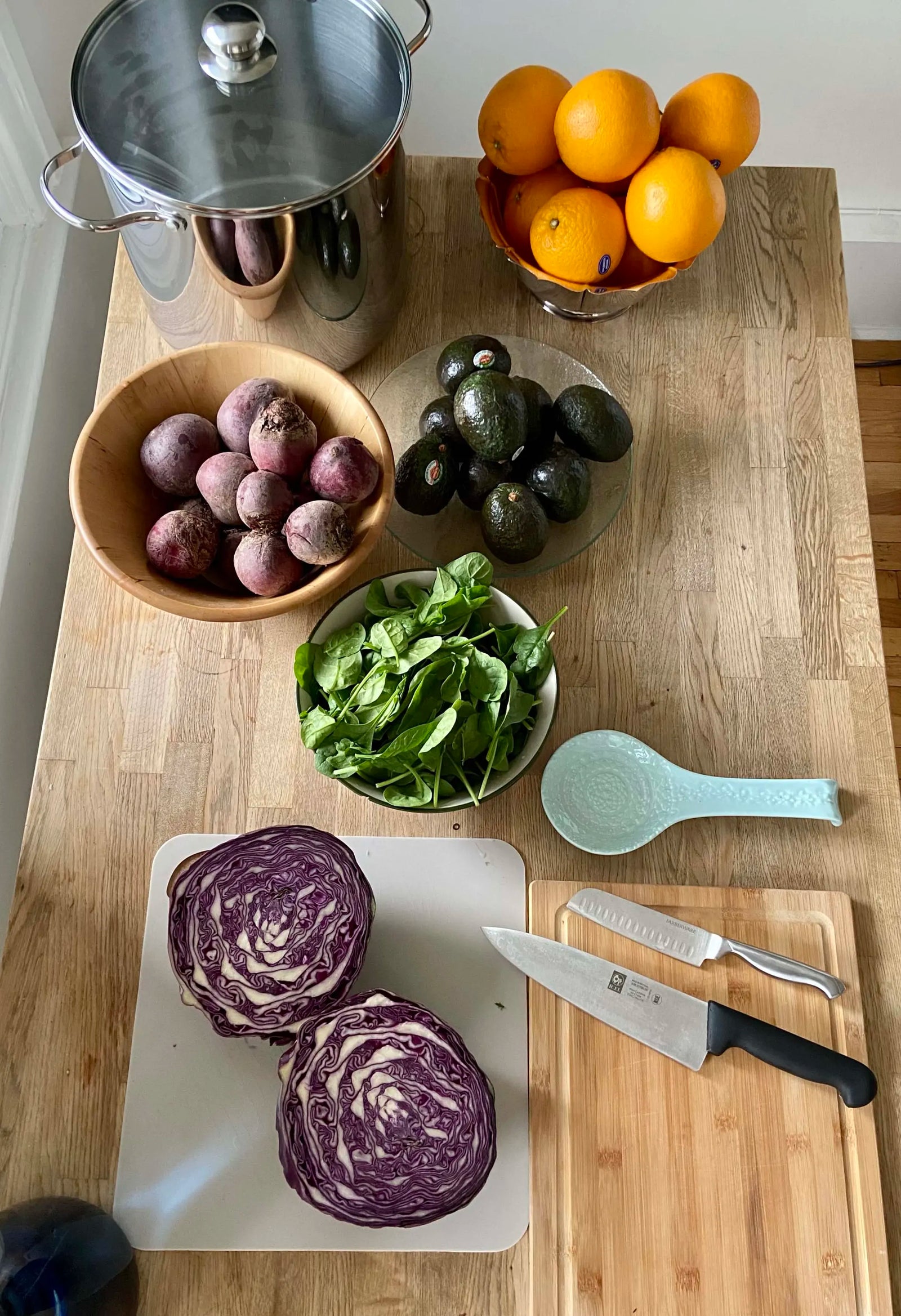 Whether you’re using spinach for a deep green, beets for red, orange peels for yellow, red cabbage for purple, or avocado peels and pits for peach-orange, the process is generally the same.