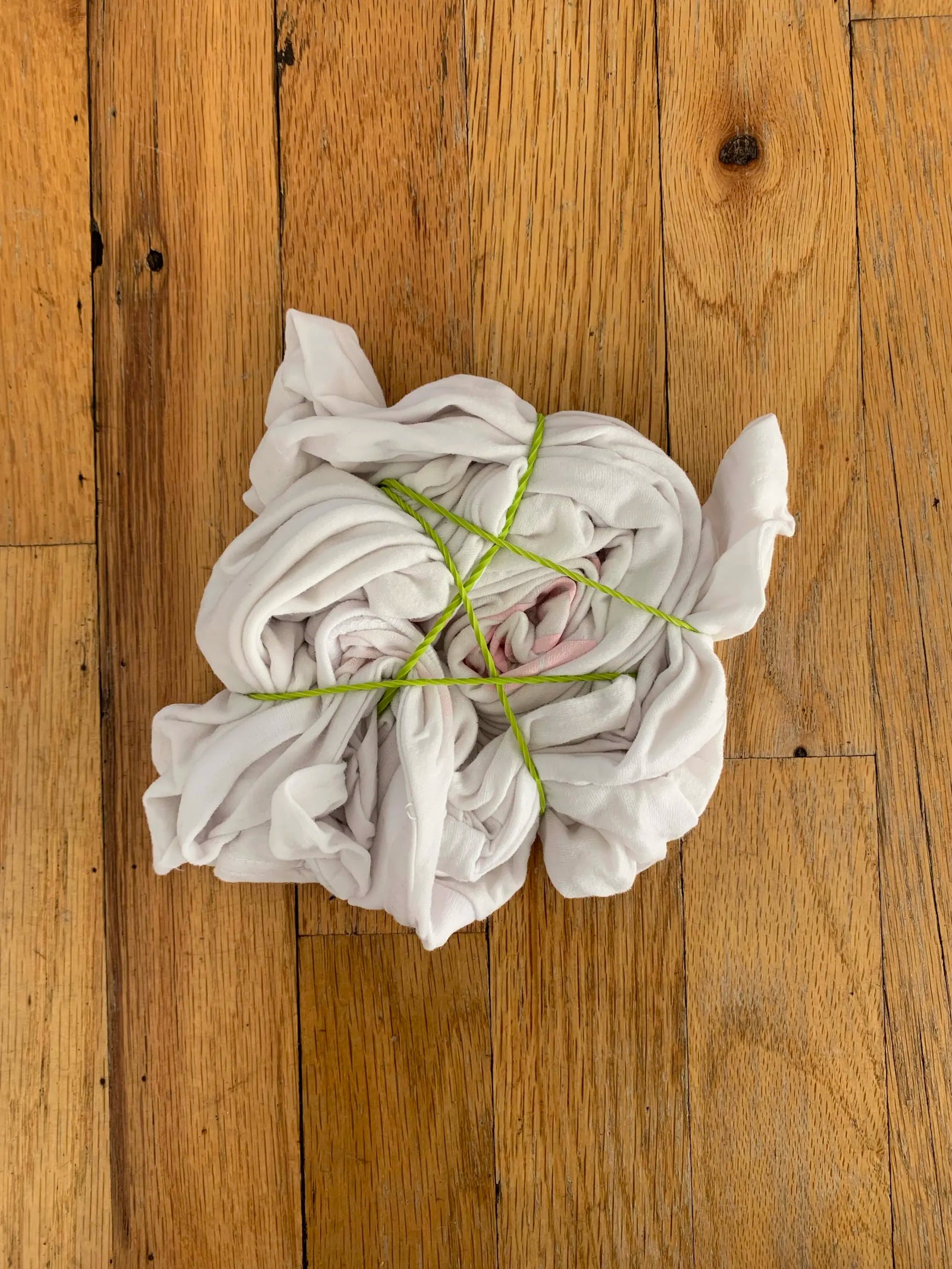 • Use your rubber bands to tie up the fabric. Try some of the methods here if you want to recreate our patterns. (insert examples and finished product side by side)