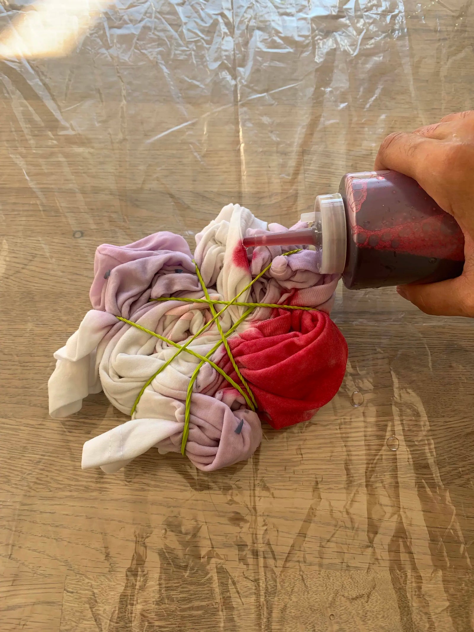 • Here’s where the artistry comes in! Pour the die onto the fabric in any way you want.