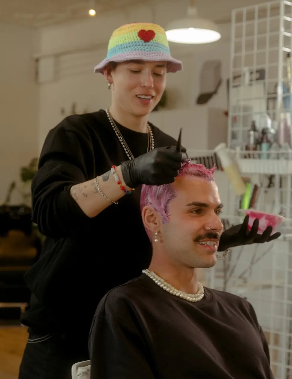 MJ: Belonging to the community myself, I have a different view of the heteronormative world. I left some traditional hair salons because of a lack of open-mindedness, they didn’t want to change things. That’s what motivated me to create a safe space for myself and for my clients who are marginalized as well. We can offer a safe space with initiatives like gender-neutral pricing and asking people for their pronouns. Small stuff goes a long way. I can’t proclaim my space completely safe because I still learn every day, but it’s at the heart of our values as a queer-owned salon.