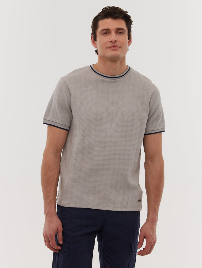 The Ernara Ringer Neck T-Shirt by Bench blends modern style with everyday comfort. Made from soft, durable fabric, it features a textured pattern for a refined look and feel. Contrast ribbed trim on the collar and sleeves adds a polished touch, while a small metal logo tag near the hem enhances its minimalist appeal.