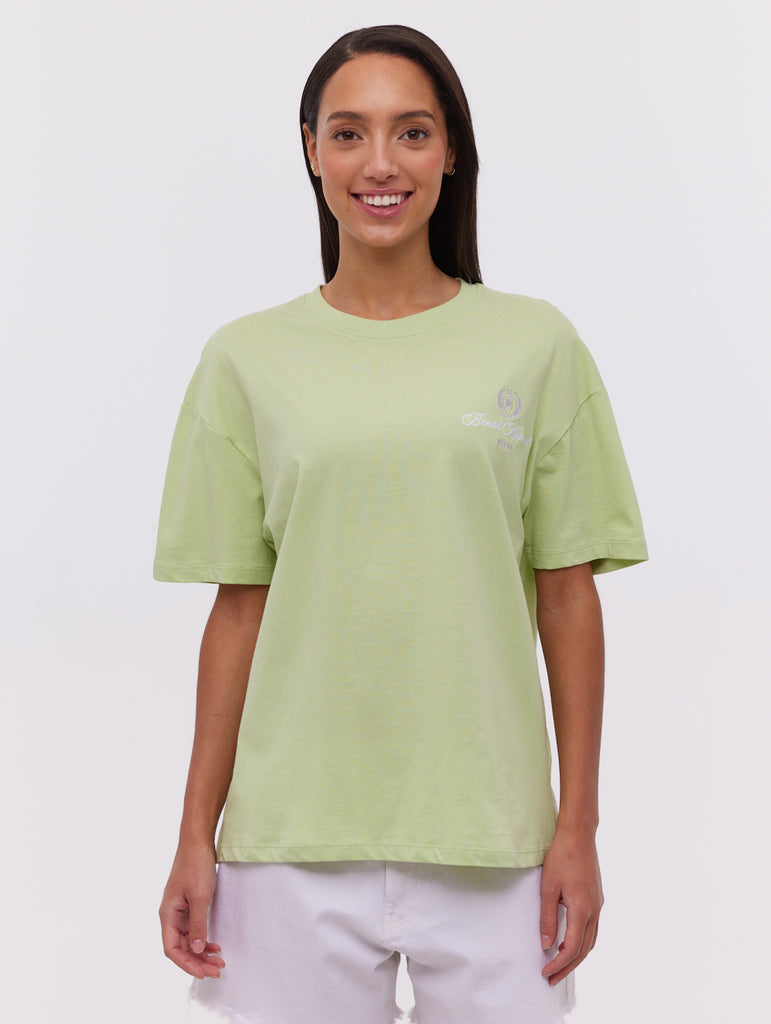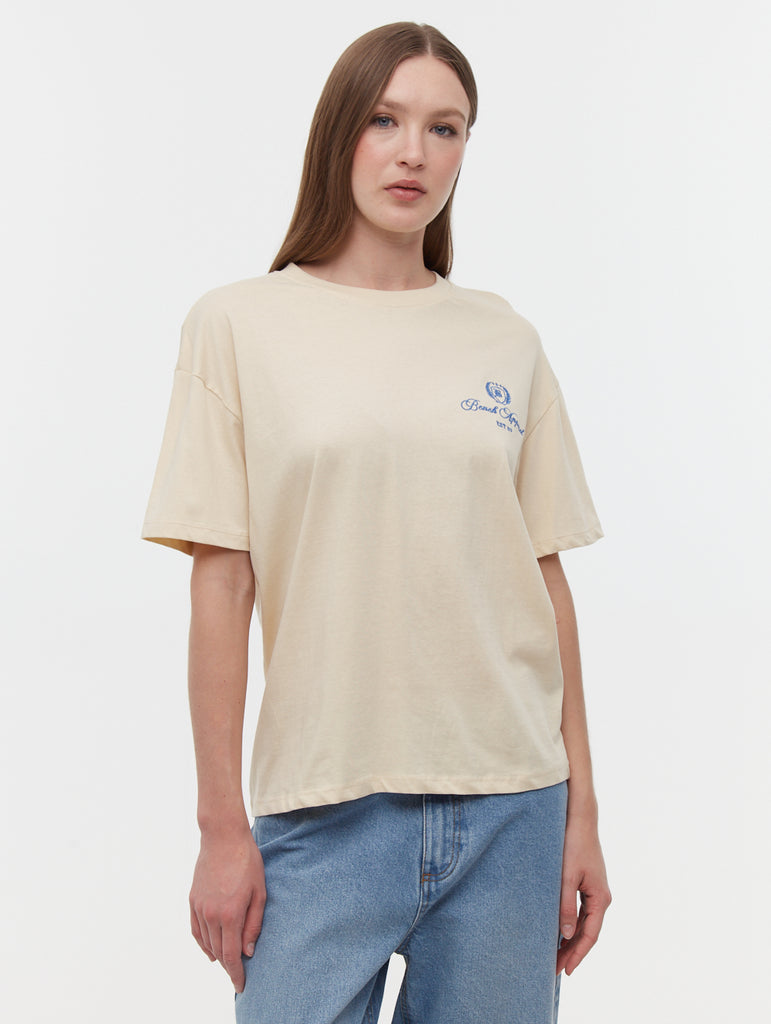 The Taja Script Graphic T-Shirt by Bench blends sporty heritage with everyday comfort. Made from soft cotton, it features a relaxed fit, crew neckline, and dropped shoulders. A small front crest and bold collegiate embroidery on the back add vintage flair, making it a standout piece for casual, effortless style.