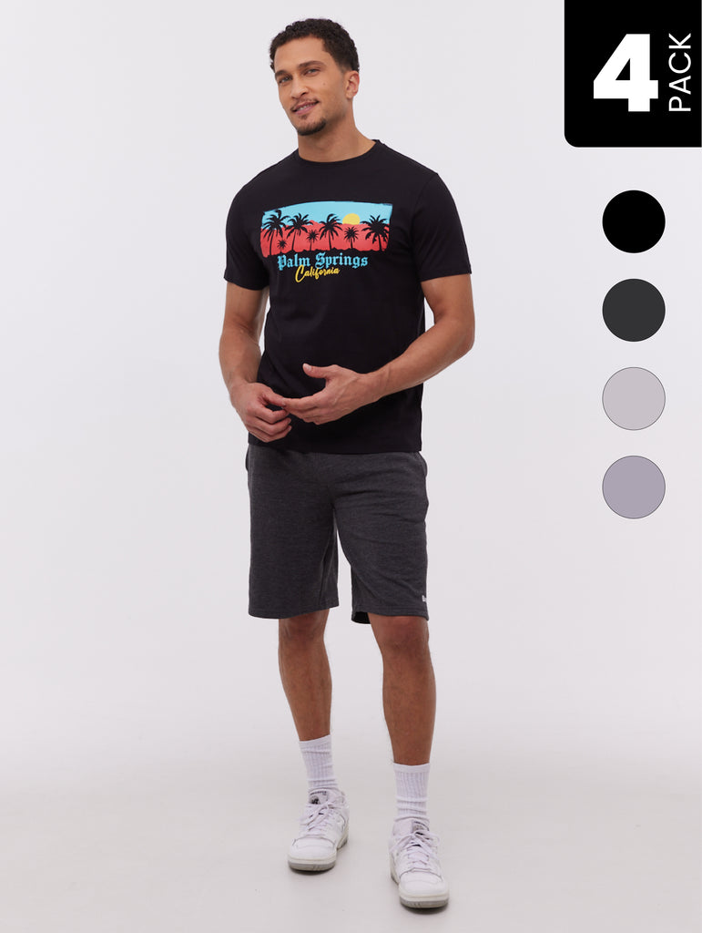The Vorcon Emblem T-Shirt & Shorts 4-Pack by Bench delivers everyday ease and versatility. Featuring breathable jersey tees and soft fleece shorts, each piece is cut in a regular fit with clean lines and subtle branding. Comfortable and minimal, this set is ideal for lounging, light activity, or casual wear.